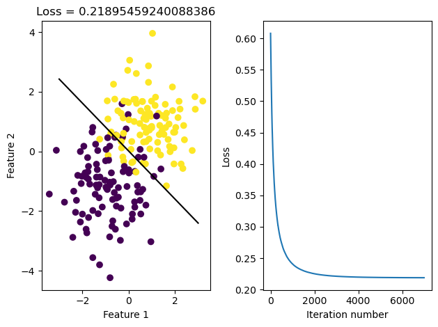 axarr[0].set(xlabel = "Feature 1", ylabel = "Feature 2", title = f"Loss = {loss}")